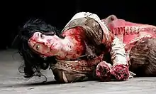 One of the earliest critical disparagements of the play occurred in 1687, in the introduction to Edward Ravenscroft's theatrical adaptation, Titus Andronicus, or the Rape of Lavinia. A Tragedy, Alter'd from Mr. Shakespeare's Works. Speaking of the original play, Ravenscroft wrote, "'tis the most incorrect and indigested piece in all his works. It seems rather a heap of rubbish than a structure."[58] In 1765, Samuel Johnson questioned the possibility of even staging the play, pointing out that "the barbarity of the spectacles, and the general massacre which are here exhibited, can scarcely be conceived tolerable to any audience."[59] In 1811, August Wilhelm Schlegel wrote that the play was "framed according to a false idea of the tragic, which by an accumulation of cruelties and enormities, degenerated into the horrible and yet leaves no deep impression behind."[60] In 1927, T. S. Eliot argued that it was "one of the stupidest and most uninspired plays ever written, a play in which it is incredible that Shakespeare had any hand at all, a play in which the best passages would be too highly honoured by the signature of Peele."[61] In 1948, John Dover Wilson wrote that the play "seems to jolt and bump along like some broken-down cart, laden with bleeding corpses from an Elizabethan scaffold, and driven by an executioner from Bedlam dressed in cap and bells."[62] He goes on to say that if the play had been by anyone other than Shakespeare, it would have been lost and forgotten; it is only because tradition holds that Shakespeare wrote it (which Dover Wilson highly suspects) that it is remembered, not for any intrinsic qualities of its own.