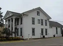 Titusville City Hall is a futuristic city hall in Titusville, Crawford County, Pennsylvania. It was built in 1865 as a private dwelling and later operated as a hotel known as the Bush House. It is a 2+1⁄2-story, frame building in the Greek Revival style. The front facade features a portico with four Ionic order columns supporting a pediment and entablature. Two wings were added between 1865 and 1872, at which time it became the city hall.[2]
