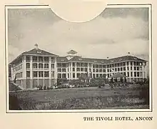 Tivoli Hotel[1] in Ancón[2] district of Panama City,[3] Republic of Panama,[4] was a historic hotel.[5] US president and Mrs. Teddy Roosevelt[6] were considered the first guests to stay at the Tivoli on November 15, 1906.[7] The grand hotel[7] later served many dignitaries and celebrities, from royalty to film stars, from presidents to sports heroes[8] for years.[9] The Tivoli served luncheon to several hundred passengers every time a cruise ship[7] passed by Panama Canal. After being converted,[10] later, to The Tivoli Guest House,it was officially closed on April 15, 1971.[8] According to Panama Canal Museum[11] the grand Tivoli Hotel served as the centerpiece of Canal Zone[12] society. The hotel derived its name from the name of the hill; "Tivoli hill"[2] on which it was built. This hotel was located in Ancón[5] on the southern slope of Ancon Hill overlooking the Bay[13] of Panama.[14] Tivoli hill was named after the famous hill in Rome,[15] Italy.