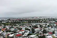 The earliest urban development of Reykjavík took place between the lake and the northern coast of the peninsula. Over the years, the lake became an integral part of the urban environment. Development of the city has centered around the lake. The postmodern City Hall, Ráðhúsið, stands in the northwest corner on the edge of the lake: it looks as if it is rising out of the lake.[14] Other notable buildings in the area are those of the Supreme Court, Reykjavík Art Museum, the National Museum, the Living Art Museum, Reykjavík City Library, and the National Theatre, as well as the Parliament building, which houses the Parliament of Iceland, and the Dómkirkja cathedral,[15] apart from a shopping complex and restaurants.[16] Several buildings belonging to the University of Iceland are also close by.[17]