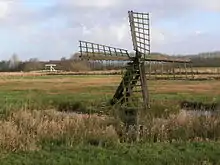 The boktjasker was at first located near Blessum where it drained a meadow. It was replaced by a metal windpump in 1954 and donated to the Friese Maatschappij voor de Landbouw Frisian Cooperation for Agriculture who restored it and erected it near Ryptsjerk though without making it functional.[4] It was moved again in 1972 and now drains some plots of meadow north of Augustinusga.[5] After 1972 it was also restored in 1988 and 2012. It is one of only three remaining boktjaskers. The Common sails have a span of 5.80 metres (19 ft 0 in). The tjasker is owned by municipally Achtkarspelen and can be easily reached on foot from the public road.[6]