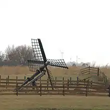 The paaltjasker was built in 1975 by the cousins Smit from Giethoorn taking over the assignment from Dijksma after his death. It was located east of Sneek.[8] It was dismantled and put into storage in 1980 after it was damaged in a storm. The mill was restored and erected in a nature reserve of Staatsbosbeheer near De Hoeve in 1996 where it is used to raise water into the nature reserve. It is located near the river Linde and a recreational bicycle path.[10][11]