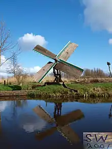 This paaltjasker was built in 1976 near a nursing home in Bolsward[7] by the cousins Smid of Giethoorn who took over the assignment from well known tjasker builder R. W. Dijksma after his death.[8] Though restored in 1988 it has since fallen into disrepair and is not in working order. The Common sails have a span of 5.20 metres (17 ft 1 in). Municipally Súdwest Fryslân is the owner.[9]