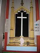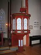 The earliest existing historical records of the church date back to 1589, but the church was not new at that time. The medieval churches were located about 60 metres (200 ft) to the east of the present site, nearly to the shoreline of the fjord. Not much is recorded about the early medieval churches, but in 1703 a new church building was constructed (or a previous building was heavily renovated). In 1768, a new church was built on the site. This church was a long church design with a sacristy. The entry porch on the new church was constructed from salvaged materials from the old church. The church measured about 16 by 5 metres (52 ft × 16 ft). In 1862, a new church was constructed about 60 metres (200 ft) west of the old church site. After the new church was completed, the old church was torn down and its materials were purchased by a local man who used them to build a barn. In 1899-1901, the church was dismantled and heavily remodeled after expanding the foundation walls. After the renovation, it has a rectangular nave and narrower, rectangular choir with a narrower, aspe on the end of the choir. On each side of the choir there are sacristies. To the west is an entry porch with a tower above it. There are also two small extensions on each side of the nave which give the building a cross-shape.[3]