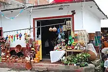 Pottery has been made in the town since far back into pre-Hispanic times. Some of the oldest pottery found here is associated with the Olmec culture.[1][10] One distinctive technique to the areas pottery is using cattail fluff as temper, mixing it into the clay.[10] Pottery items include flowerpots, storage jars, figures, cooking pots, comals, jars, dishes and more. Many are glazed in various colors.[1] To honor the tradition there is a Museo del Alfarero or Potters’ Museum in the Capilla de la Natividad and a festival dedicated to the craft.[16] The Feria del Barro, also known as the Festival Cultural de Tlayacapan was initiated by Cornelio Santamaría and is held each November.[9][31] The 2009 Feria de Barro featured singer Susana Harp and groups such as Leones de la Sierra as well as the native Banda de Tlayacapan. The festival not only showcases the area's pottery but also has expositions of photography, other crafts and children's events.[32]