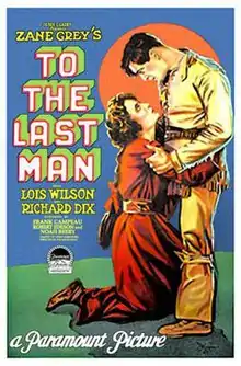 To the Last Man is a 1923 American silent Western film based on the 1921 novel by Zane Grey, produced by Adolph Zukor and Jesse L. Lasky from Famous Players-Lasky, distributed by Paramount Pictures, directed by Victor Fleming, and starring Richard Dix, Lois Wilson, and Noah Beery. The cinematographer was James Wong Howe.