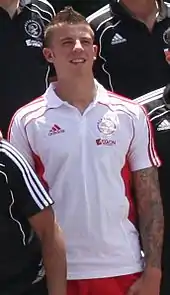 Born in Antwerp,[5] Alderweireld moved to Ajax's youth academy in August 2004 from Germinal Beerschot. On 22 February 2007, he signed his first professional contract, tying him to the club until 30 June 2010.[6] He was promoted to the first team for the 2008–09 season, but only made his first team debut on 18 January, in the 4–2 victory over NEC.[7] On 26 February, he made his European debut during a 1–1 draw against Fiorentina in the UEFA Cup.[8] Although he only made several appearances for the remainder of the season, he was awarded a new long-term contract extension until 2014.[9]