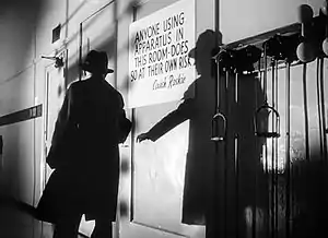 Welles planned to use the Todd campus as the setting for his 1946 film, The Stranger. The idea was ruled out by budget restrictions, but a few artifacts are seen in the film. A sign in the Harper School gymnasium reads "Harper vs. Todd"[21]: 197 and refers to Clover Hall and "Mrs. Collins"—Annetta Collins, teacher, housemother and director of kitchen services.[3][22] It was Collins who had recruited Welles for Todd in 1926, after meeting the boy at his father's hotel in Grand Detour, Illinois.[23]: 22 A note on a blackboard, in Welles's handwriting, refers to Wallingford Hall.[24]: 9:03 Another notice is signed "Coach Roskie"—Anthony C. Roskie, Todd's longtime athletic director.[22]