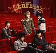 "Together" is Tohoshinki's 15th Japanese single. It was released on December 19, 2007 and debuted at #2 on the Oricon Daily Charts, ending as #3 overall for the week. Together is used as the ending song for the Sanrio and Madhouse Animated Film, Cinnamoroll The Movie.