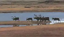 The refuge is home to 48 mammal species, 31 of which are terrestrial and 17 marine. More than 150,000 caribou from two herds, the Nushagak Peninsula and the Mulchatna, make use of refuge lands, which they share with wolf packs, moose, brown and black bear, coyote, Canadian lynx, Arctic fox, muskrat, wolverine, red fox, marmot, beaver, marten, two species of otter, and porcupine, among other land mammals. Seals, sea lions, walrus and whales are found at various times of year along the refuge's 600 miles (970 km) of coastline.