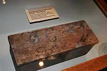 Addressing this contingency, the Ohio delegates included a provision in the draft Ohio constitution that if this report about Lake Michigan's position was correct, the state boundary line would be angled slightly northeast so as to intersect Lake Erie at the "most northerly cape of the Miami [Maumee] Bay". This provision would guarantee that most of the Maumee River watershed and the southern shore of Lake Erie west of Pennsylvania would fall in Ohio.[4] The draft constitution with this proviso was accepted by the United States Congress, but before Ohio's admission to the Union in February 1803, the proposed constitution was referred to a Congressional committee. The committee's report stated that the clause defining the northern boundary depended on "a fact not yet ascertained" (the latitude of the southern extreme of Lake Michigan), and the members "thought it unnecessary to take it [the provision], at the time, into consideration."[5]