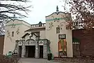 By the 1920s, the Toledo Zoo created its first master plan, which called for new buildings. This plan was based on in-depth study of the eight most successful zoos around the world.[17] The architectural style used in their plan was inspired by the Spanish architecture from the city's namesake, Toledo, Spain. By 1924, they had completed the first building of their master plan, the Elephant House.[18] In order to maintain funding for the zoo, Jones had brokered a deal with the City of Toledo so that it could be managed similar to the Bronx Zoo. The Toledo Zoo became a public/private venture in 1926, allowing financial support from the city while leaving operations in the hands of the TZS. This change led to the formation of the Board of Managers, which was five city officials and four TZS members.[19] In 1928, they completed their second building, the Herbivora (Giraffe House).[20] On Christmas Day 1927, the Carnivora Building was opened to the public, after ground breaking was done by Kermit Roosevelt.[21] In 1929, the Toledo Zoo completed its last building prior to the WPA Era, the Primate House.[22]