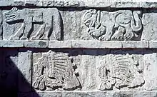 The Toltec culture (/ˈtɒltɛk/) was a pre-Columbian Mesoamerican culture that ruled a state centered in Tula, Hidalgo, Mexico, during the Epiclassic and the early Post-Classic period of Mesoamerican chronology, reaching prominence from 950 to 1150 CE.[1] The later Aztec culture considered the Toltec to be their intellectual and cultural predecessors and described Toltec culture emanating from Tōllān [ˈtoːlːãːn̥] (Nahuatl for Tula) as the epitome of civilization.[2] In the Nahuatl language the word Tōltēkatl [toːɬˈteːkat͡ɬ] (singular) or Tōltēkah [toːɬˈteːkaḁ] (plural) came to take on the meaning "artisan".[3] The Aztec oral and pictographic tradition also described the history of the Toltec Empire, giving lists of rulers and their exploits.