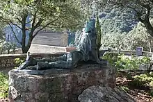 Already during the Civil War Caylà was commemorated in a hagiographical booklet published in 1938, presenting him as champion of the Catholic, national and anti-bolshevik cause.[149] Following the nationalist conquest of Catalonia in 1939 Caylà and other executed or fallen vallencs were re-buried in the newly constructed Panteó dels Mártirs on the Valls cemetery.[150] A street in the old town was named after him and it remains so until today. In the 1940s Caylà remained a hero of the Tarragona Carlists, serving as a role model for the branch opposing Francoism[151] and for those who chose to side with the regime, supporting the claim of self-styled claimant Carlos VIII.[152] Juventud, the Falangist weekly launched in Tarragona in 1943 was styled as continuation of Joventut; issued in Spanish and subtitled Semanario nacional sindicalista it had little in common with the original Caylà's periodical.[153]