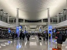 Terminal 2 has 12 gates: Gates 21, 21B, 22, 23A–23B, 24, 25A–25B, 26A–26B, 27 and 28.[17] As of June 2022, this terminal, along with Terminal 3, serves as a hub for Delta Air Lines.[15] The terminal is also used by WestJet. Due to construction, passengers travelling from Terminal 2 check in at Terminal 3.