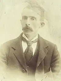 In 1878, at the age of 20, he joined the Irish Republican Brotherhood (IRB) following the visit to Dungannon by John Daly, and by 1880 he was centre (head) of the local IRB circle.[3] In August that year, after a member of the Royal Irish Constabulary (RIC) had shot and killed a man during riots between the Orange Order and the Ancient Order of Hibernians in Dungannon, Clarke and other IRB members attacked some RIC men in Irish Street. They were driven back, however, and Clarke, fearing arrest, fled to the United States.[4]