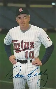 Jay Thomas Kelly (born August 15, 1950) is an American former professional baseball player, coach and manager. As the manager of the Minnesota Twins of Major League Baseball over 16 seasons from mid-September 1986 through 2001, he won two World Series championships. Currently, he serves as a special assistant to the general manager for the Twins.