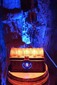 Additional features in the cave include "pop-up" gags featuring Pintel and Ragetti from the Pirates of the Caribbean films who are guarding cursed treasure as well as other effects featuring disappearing treasure and a genie in a bottle guarding treasure.