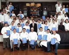 Tom Valenti is the Executive Chef at Jockey Hollow Bar and Kitchen in Morristown NJ. Chef Valenti was formerly the owner and Executive Chef of Oxbow Tavern on the Upper West Side of Manhattan. He is the former Executive Chef of Le Cirque Restaurant in Midtown Manhattan, in New York City.[1] Previously, he was Executive Chef and co-owner of Ouest Restaurant on the Upper West Side of Manhattan which shuttered in 2015. The recipient of many awards for his comfortable cooking style, Valenti is best known for his salmon gravlax and slow-cooked meats, particularly braised lamb shanks. Chef Valenti is the author of 3 cookbooks, "Welcome to my Kitchen", "Soups, Stews and One Pot Meals" as well as "You Don't Have to be Diabetic to Love This Cookbook", dedicated to recipes for diabetic diets. Valenti was the driving force behind the creation of the Windows of Hope Family Relief Fund, established to benefit the surviving family members of foodservice-related victims of the September 11, 2001 attacks.[2]