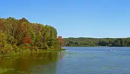 It is 150 acres (60 ha) in area. Recently a 30-acre (12 ha) section of the lake became infested with water chestnuts and had to be treated with herbicide.[1] The state Department of Environmental Conservation found in 2006 that the dam had not been operated safely, lacked an emergency action plan and had been repaired in the past without a required construction permit.[2] The tree clearing and construction work required by DEC is now underway (summer 2009) and can be seen from Cherry Hill Rd.