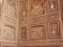 Similar to the tomb of Akbar, Jahangir's tomb lacks a central dome as the Emperor is reported to have expressly forbade the construction of a dome over his tomb.[20] The use of domes in Mughal funerary architecture was first used at the Tomb of Humayun, and re-established by Shah Jahan.[21][7]