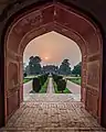 The gardens surrounding the tomb are vast, and laid out in the Persian Chahar Bagh, or Paradise garden.[24] The garden is separated into four squares by paved walkways (khiyabans) and two bisecting central water channels which are designed to reflect the four rivers that flow in jannat, the Islamic concept of paradise. Each of the four squares is further divided into smaller squares with pathways, creating into 16 squares in all. The garden forms a quadrangle measuring approximately 500 metres on each side.[22]