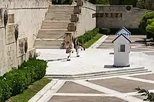 The Tomb of the Unknown Soldier (Greek: Μνημείο του Αγνώστου Στρατιώτη, romanized: Mnimío tou Agnóstou Stratióti) is a war memorial located in Syntagma Square in Athens, in front of the Old Royal Palace. It is a cenotaph dedicated to the Greek soldiers killed during war. It was sculpted between 1930 and 1932 by sculptor Fokion Rok.