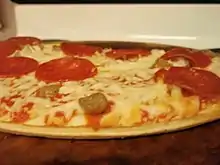 ![]() An undercooked sausage and pepperoni Tombstone pizza | |