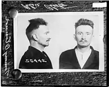 O'Connor was baptised in Monagea Catholic Church, County Limerick, Ireland in 1889, his birth was not officially registered until the following year.[3] He emigrated with his family to the United States as a boy. He first came to public notice when he was arrested after a shootout in which Chicago Police Detective Patrick J. O'Neil was gunned down March 13, 1921.[4] This came as a result of investigators coming to arrest him as a prime suspect in a previous case. O'Connor fled and was later arrested in St. Paul, Minnesota. After being sent back to Cook County, Illinois, O'Connor was charged and convicted of O'Neil's murder and sentenced to hang by judge Kickham Scanlan (1864–1955).[5] Four days before the scheduled execution, he and four other prisoners overpowered the guard, took his rifle, and escaped from the courthouse.[6] All but two of the men were last seen dodging through traffic and made their escape.