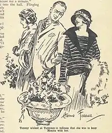 Illustration by Arthur Ferrier of Tommy and Tuppence from the December 1923 issue of The Grand Magazine and the first-known image of the characters