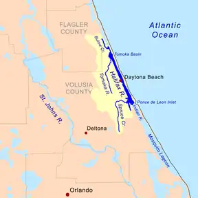 The Tomoka River is a north-flowing river in Volusia County, Florida, United States. It drains an area of about 110 square miles (280 km2)[1] and has a length of 19.6 miles (31.5 km).[2]
