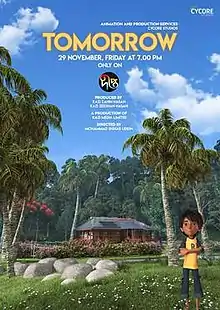 Tomorrow is a 2019 computer animated Bangladeshi short film directed by Mohammad Shihab Uddin[1] which was released in 2019 on Deepto TV.[2] The film is produced by Kazi Zahin Hasan and Kazi Zeeshan Hasan for Kazi Media Limited while Cycore Studios provided the animation and production services for the film.[3] The main purpose of the film is to explain the climate change crisis to children.[4] It won the best animation film award at Cannes world film festival for the month of August, 2021.[5]