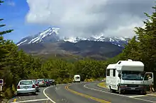 There are a number of Māori religious sites within the park,[3] and many of the park's summits, including Ngauruhoe and Ruapehu, are tapu, or sacred.[4] The park includes many towns around its boundary including Ohakune, Waiouru, Horopito, Pokaka, Erua, National Park Village, Whakapapa skifield and Tūrangi.