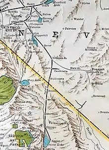 The Tonopah and Goldfield Railroad, a railroad of 100.4 miles (161.6 km) in length in the U.S. state of Nevada,[1] offered point-to-point service between Mina and Goldfield,[2] running over the Excelsior Mountains and parallel to the Monte Cristo Range. It operated from 1905 until 1947.[2]
