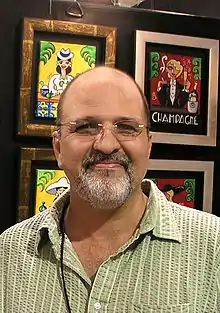 Tony Mendoza (August 24, 1961 in Newburgh, New York) is a Cuban-American artist with a studio in Miami, Florida. Mendoza's style is Primitive Expressionist and "Caricaturista," a type of art that is whimsical in nature. Mendoza works mainly with acrylic on canvas.[1]