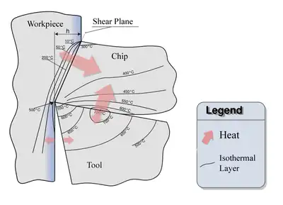 Energy comes in the form of heat from tool friction. It is a reasonable assumption that 80% of energy from cutting is carried away in the chip. If not for this the workpiece and the tool would be much hotter than what is experienced. The tool and the workpiece each carry approximately 10% of the energy. The percent of energy carried away in the chip increases as the speed of the cutting operation increases. This somewhat offsets the tool wear from increased cutting speeds. In fact, if not for the energy taken away in the chip increasing as cutting speed is increased; the tool would wear more quickly than is found.