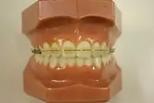 Dental braces (also known as braces, orthodontic cases, or cases) are devices used in orthodontics that align and straighten teeth and help position them with regard to a person's bite, while also aiming to improve dental health. They are often used to correct underbites, as well as malocclusions, overbites, open bites, gaps, deep bites, cross bites, crooked teeth, and various other flaws of the teeth and jaw. Braces can be either cosmetic or structural. Dental braces are often used in conjunction with other orthodontic appliances to help widen the palate or jaws and to otherwise assist in shaping the teeth and jaws.