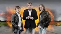 During the premiere episode of the series, the presenters of Top Gear claimed that, between the filming of the ninth and tenth series, rival motoring magazine show Fifth Gear had broken into their premises and burnt down all their props. Prior to the episode being aired, a fire occurred on 12 August 2007 at Hill End Farm, destroying a barn being used as a storage facility for Top Gear props.[4] This was evidently shown to be the case on the episode, as the Cool Wall and all the cars' photos for it had been destroyed, while the car seats the hosts used on the centre stage for the 'News' segments and for interviewing the celebrities during the 'Star in a Reasonably Priced Car' segments on the centre stage of the studio, along with the flat screen monitor, had been replaced with wingback chairs and an old TV. It was later revealed that the incident had been a publicity stunt dreamt up between Clarkson and Vicki Butler-Henderson, who were old friends.