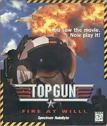 Top Gun: Fire At Will was released by Spectrum HoloByte in 1996 for DOS, Windows, and PlayStation. Mac OS port was released in 1998. It is the only title to feature any actors from the film, with James Tolkan reprising his role as a commanding officer (he is called "Stinger" in the film, but is called "Hondo" in Fire at Will).[3]