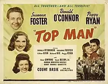 Top Man (also known as Man of the Family) is a 1943 American black-and-white film directed by Charles Lamont and starring Donald O'Connor, Susanna Foster, Lillian Gish, Richard Dix, and Peggy Ryan.[2] It was O'Connor and Ryan's first film away from the third of their trio, Gloria Jean.