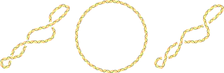 Three topoisomers of a closed circular DNA molecule. Left: negatively supercoiled; center: relaxed; right: positively supercoiled