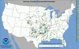 - "U.S. Annual Tornado Maps (1952 - 2011): 1982 Tornadoes". Storm Prediction Center. National Oceanic and Atmospheric Administration. Retrieved May 16, 2015.