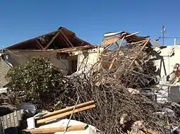 The tornado, as it killed four people, officially became the second deadliest in New York history, behind an F1 tornado that killed nine people in East Coldenham on November 16, 1989.[58] However, the status of the 1989 event as a tornado is disputed, with tornado experts Thomas P. Grazulis and Ted Fujita concluding that the event was a downburst.[59] Damage was relatively light in comparison, for such a death toll at only $600,000, due to the short time on the ground.[60] One house was thrown hundreds of feet into another house. In addition, over 40,000 people in Smithfield lost power.[58] The tornado either heavily damaged or destroyed approximately ten homes and downed numerous trees. Then-governor Andrew Cuomo said that "it looks like a literally a bomb went off in a house”[61] and that the loss of life, especially of a four-month old baby, was unrepairable.[62]