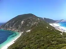 Fauna such as kangaroos, bush rats, pygmy possums and short-nosed bandicoots are found within the park. Many reptile species are also to be found, including tiger snakes, bardick, Children's python and dugites. In 1876 the rare dibbler was found in the park.[9] Birdlife includes honeyeaters, wattlebirds, button quail, western rosella and a variety of seabirds.[10] Whales and seals can be seen from the cliffs of the park in the correct season.