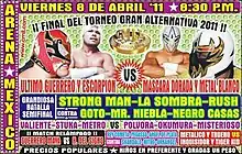 | 6 | Escorpión and Último Guerrero defeated Máscara Dorada and Metal Blanco | Gran Alternativa 2011 final tag team match |