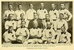 In 1900, a group of 52 Toronto businessmen, spearheaded by Ed Barrow and Ed Mack, a tailor and former ballplayer, bought the team for CA$6,000.[3] The club constructed a new stadium at Liberty Street and Fraser Avenue, called Diamond Park. Led by Barrow, the Leafs won the International League pennant in 1902 with a record of 85–42.