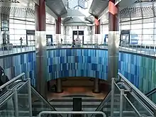 | Sliding Pi | Arlene Stamp | Large-scale mosaic along the curved wall of the stairway between the bus platform and the mezzanine | ![]() | ||