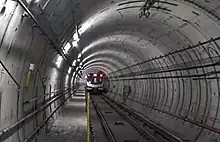 Tunnels are either square or round, depending on the method of their construction: Square tunnels were built with the cut and cover method of digging trenches down from the surface, constructing the tunnel structure, and then backfilling.[2] Round tunnels are bored using a tunnel boring machine (TBM). The cut and cover technique was used extensively on the oldest portions of the subway system, while newer sections were predominantly or, in the case of the Toronto-York Spadina Subway Extension (TYSSE), which opened in 2017, entirely bored.