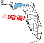 The Torreya Formation is exposed or near the surface from Gadsden County, Florida on the west. Its eastern extent is westernmost Hamilton County, Florida. It includes the counties of Liberty, Leon, Jefferson, Madison, and Wakulla. It is informally subdivided into a lower carbonate unit and an upper siliciclastic unit. The majority of Torreya Formation outcrops expose the siliciclastic part of the unit.[1]