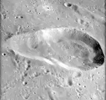 Torricelli is a lunar impact crater in the eastern part of the Sinus Asperitatis, to the south of the Mare Tranquillitatis. It was named after Italian physicist Evangelista Torricelli.[1] The western rim of the crater is broken open and joined to a smaller crater to the west. The entire formation has a pear-shaped appearance. Torricelli lies in the northeastern part of a circular formation of rises in the lunar mare, possibly the remains of a crater formation buried by lava.